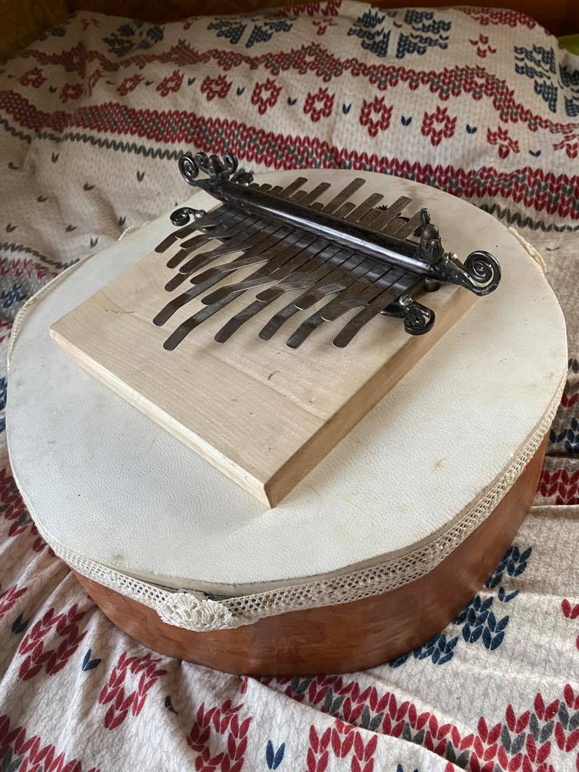 A different order job! A sansula also called kalimba. A musical instrument. I have made the metal parts and the square wooden plate everything is mounted on. The customer has then mounted everything on a drum-like device that amplifies the sound when playing on it. You play on the metal tongues that I made from hardened saw blades.