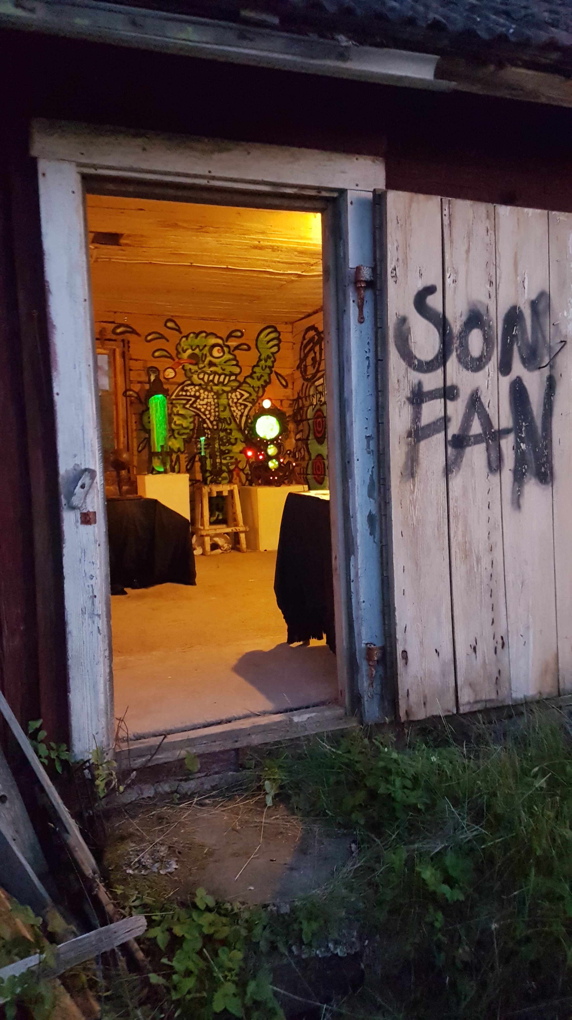 At short notice I recently went and had a spontaneous exhibition at the Punk illigal festival which this year is held at a place about 80 km from where I live called Svartmyra. I set up my art in a really cozy showroom with some punky graffiti that worked well with my stuff! And it became a very fun and unpretentious event were i also got to meet many old punk friends that I haven’t seen in many years and get to know a lot of new ones!! Definitely one of the most fun exhibitions I’ve had!