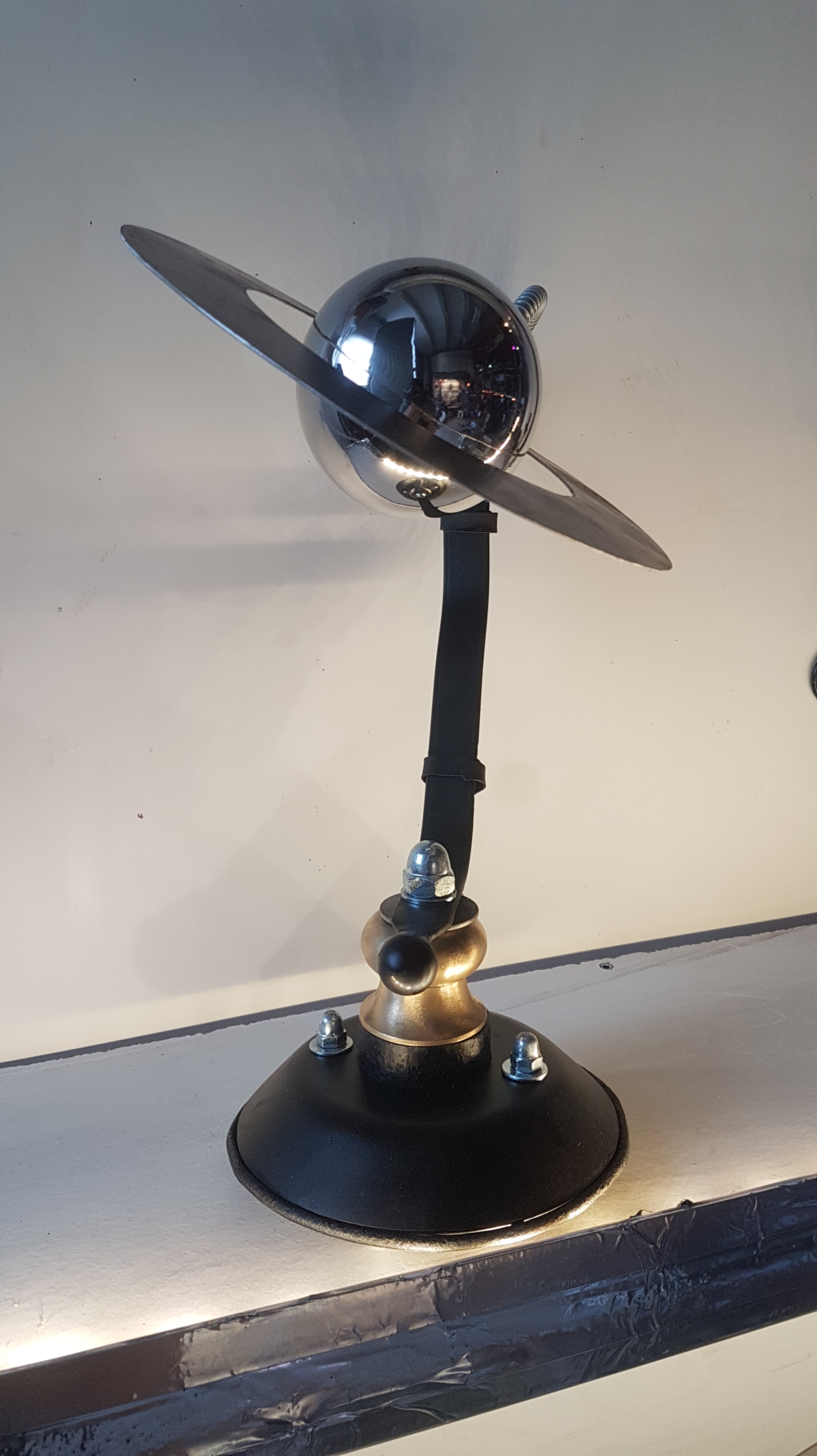 Saturnator 3, 2025, Another sculpture inspired by the fabulous planet Saturn! This one is a little smaller variant and made of stainless steel.