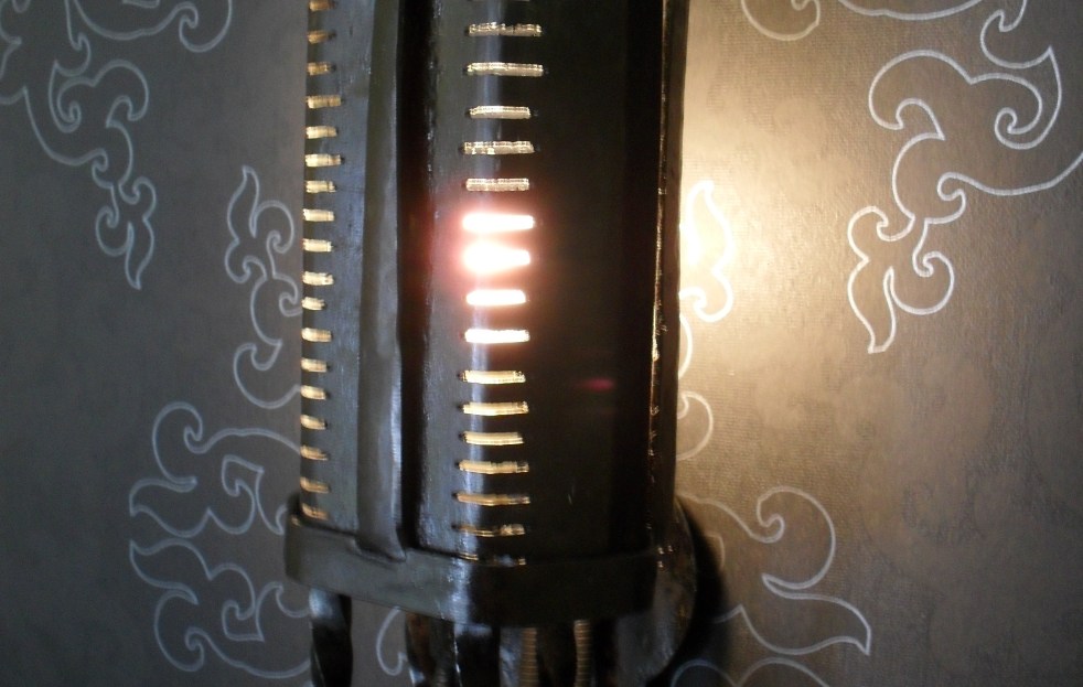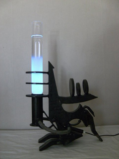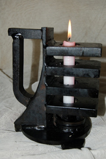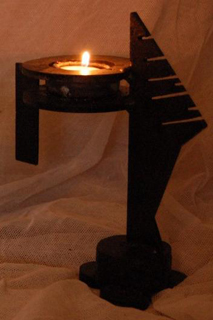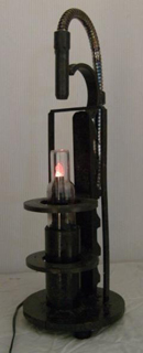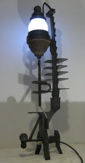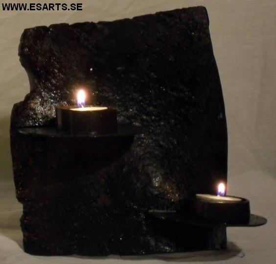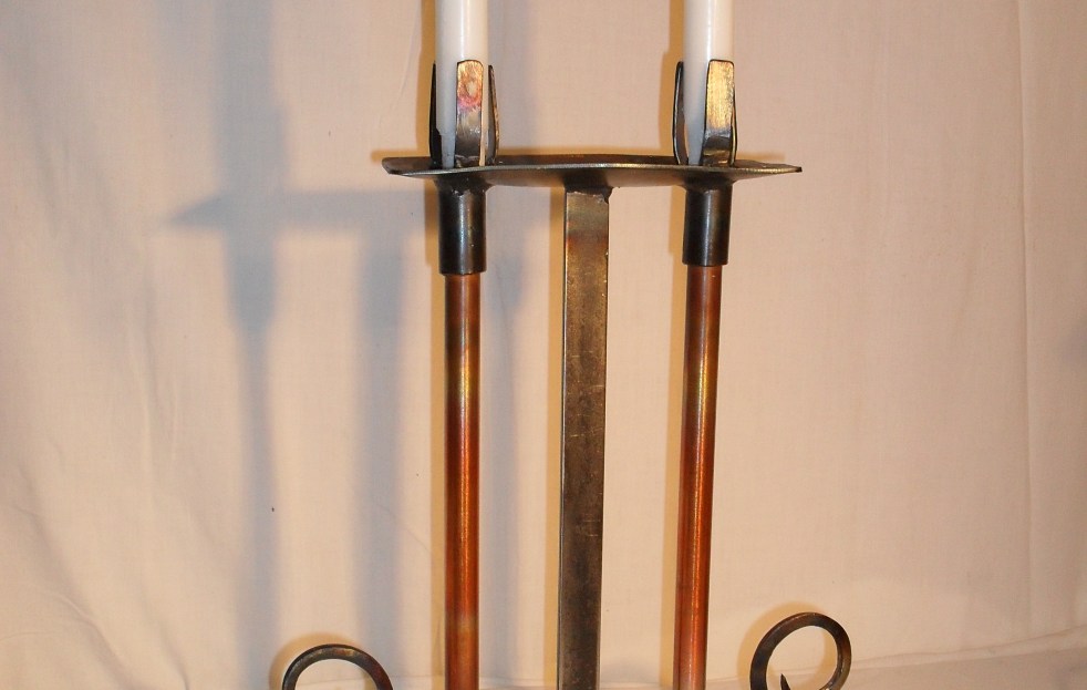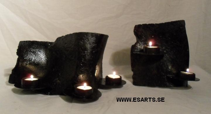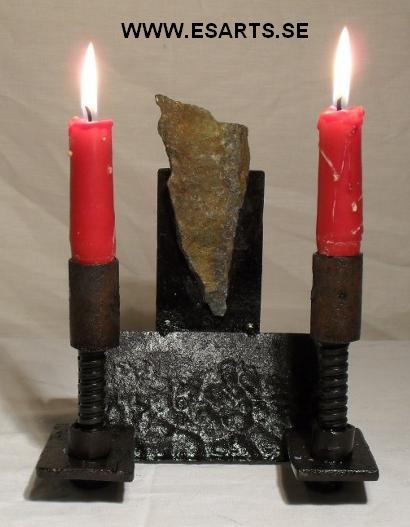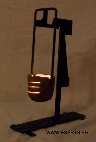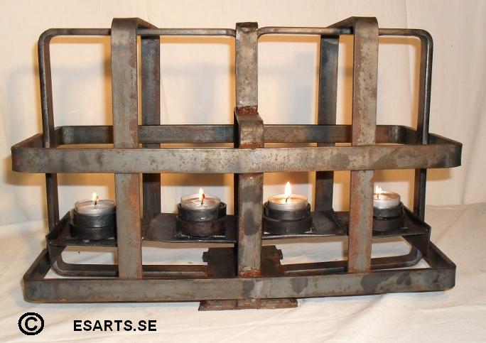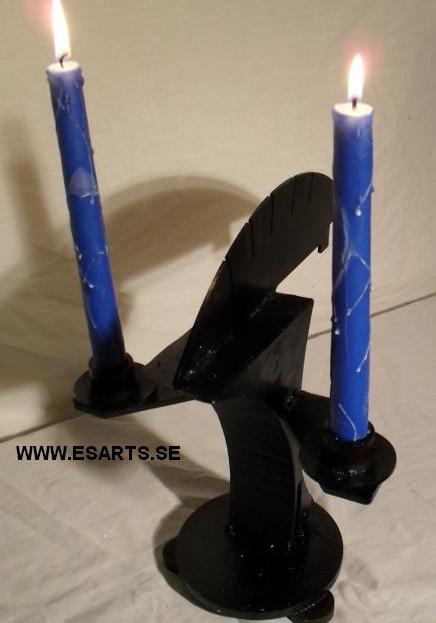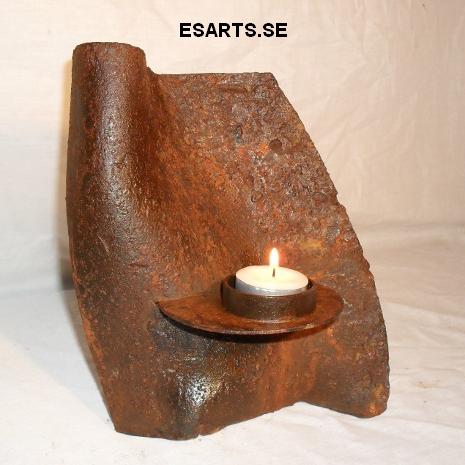 2018 ljusskulptur av järn koppar och glas. pris vid försäljning 1300kr