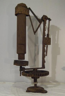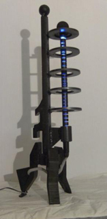 Tripod, Inspirerad av H.G. Wells roman Världarnas krig, från 1898. som material har bla en gammal kromad kofångare till till en VW-bubbla använts Ca 70 cm hög, 2017. pris vid försäljning 1500 kr